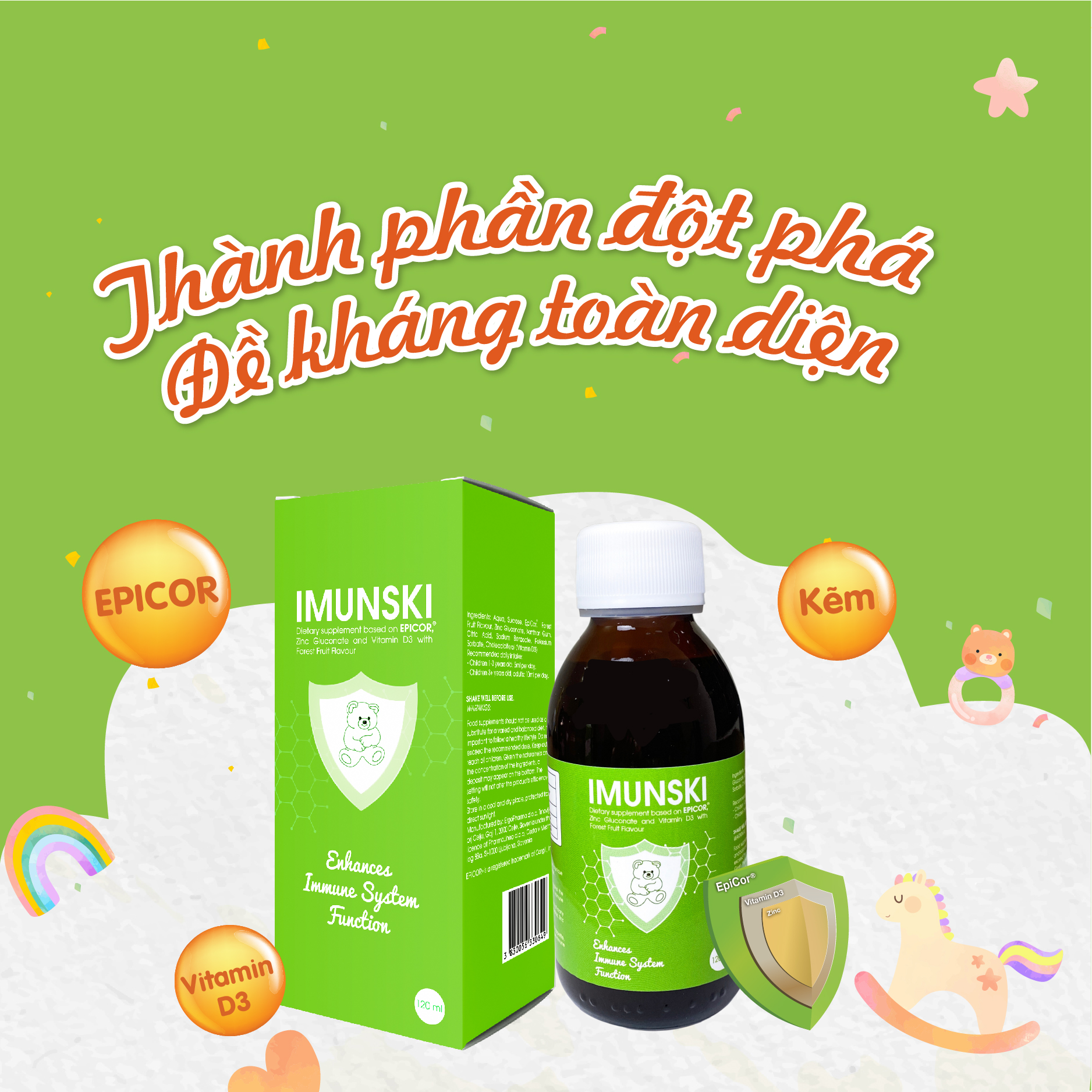 Nếu con đang bị cảm, viêm nhiễm hoặc uống thuốc (trừ các thuốc đặc trị), hoàn toàn có thể dùng IMUNSKI để hỗ trợ hệ miễn dịch và giúp rút ngắn thời gian bệnh. Chủ động bảo vệ sức khỏe cho bé ngay hôm nay.